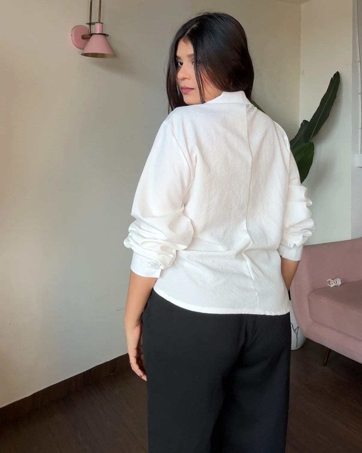 Effortlessly chic, this Solid Button-Up Wrap Shirt combines classic tailoring with a modern wrap design. Perfect for work or casual days, it offers a flattering fit and timeless style.Fits S-XL easily