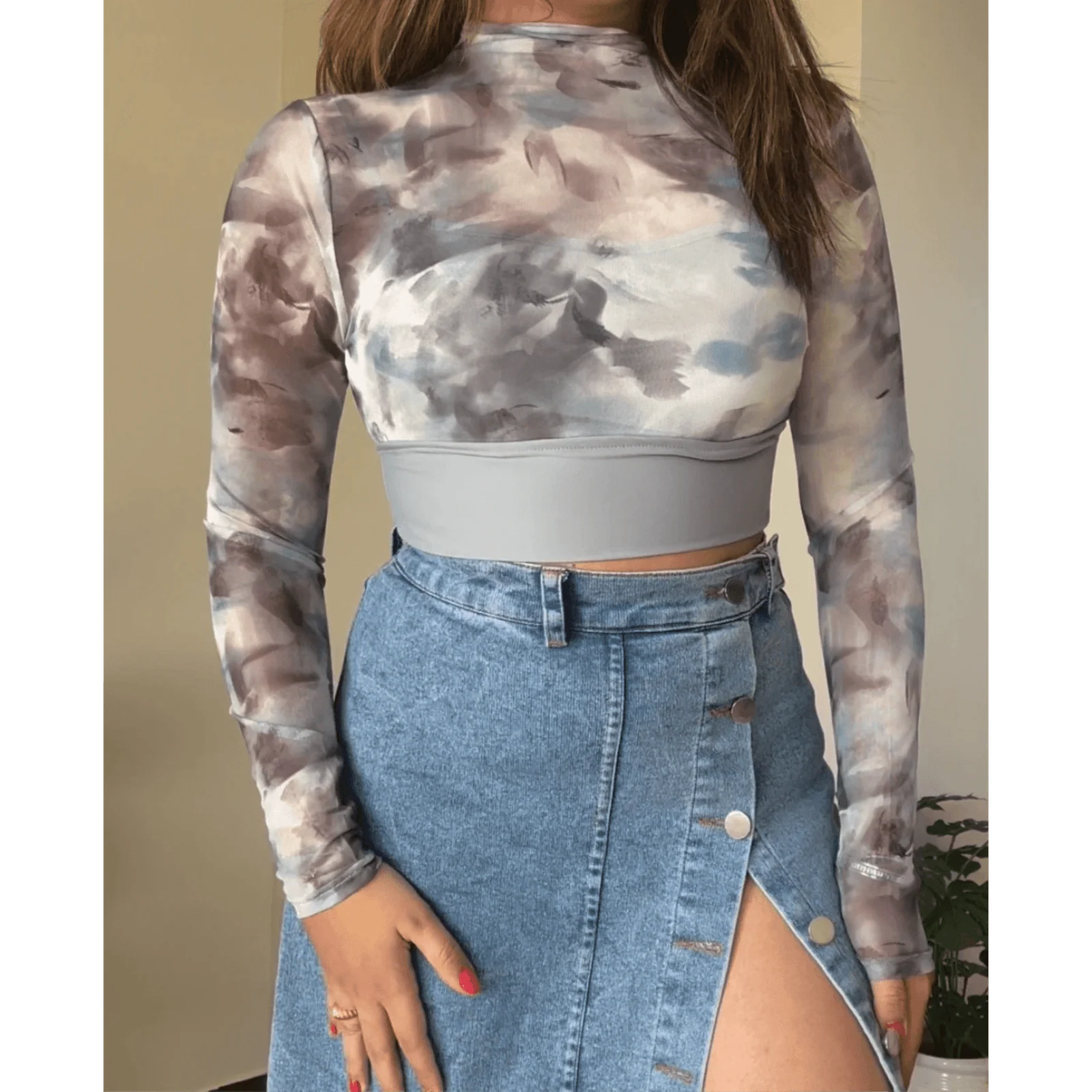 Tie-Dye Bodycon Long Sleeve Dress